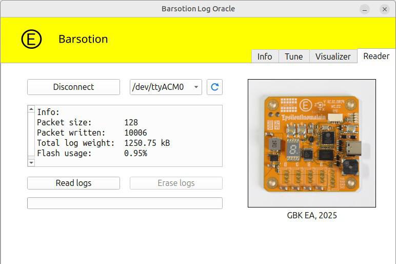 Меню "Reader" позволяет читать логи с бортовых компьютеров, используя специальный протокол поверх USB-CDC. Далее приведен алгоритм работы.