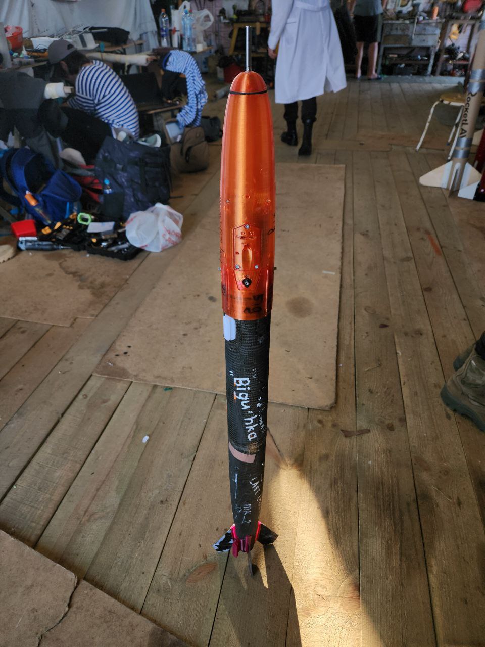 Вооружившись новыми знаниями, мы решили использовать другие стропы и взять их с запасом, чтобы наверняка, и запуститься снова без САС. Но в этот раз подстава вылезла не одна - отсутствовал нужный нам двигатель, а у того, что был в наличии, вышибной заряд срабатывал гораздо раньше апогея. Это критично тем, что в случае раннего срабатывания вышибного, а следовательно скорость может быть немалой, то нагрузка на парашют будет в значительной степени больше, чем рассчитывалось, и велик шанс, что вся система не выдержит таких "издевательств". Поскольку выбора не было, пришлось утяжелить МГМ, чтобы хоть как-то уменьшить скорость ракеты в момент раскрытия парашюта. Ситуация стала лучше, но ненамного: корпус снова перешел в неконтролируемое падение, а головной обтекатель улетел на парашюте в ракетный рай так далеко, что искать его не имело никакого смысла. После обнаружения корпуса, опять были обнаружены следы прогара корпуса двигателя.